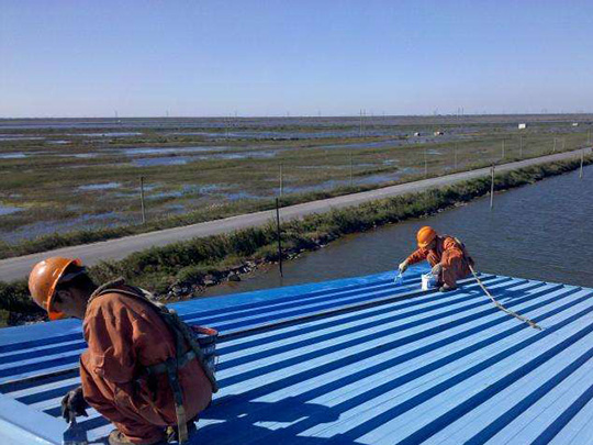 對(duì)于金屬屋面,需要保證其干凈整潔,并且使用砂紙將生銹的地方打磨干凈,再涂上基層涂料。可以選擇噴涂或刷涂的方式,每次涂刷要保證前一次已經(jīng)干透。對(duì)于金屬屋面天溝縫的地方,可以做局部的防水,再刷上涂料。